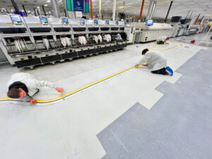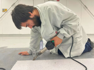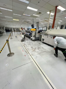 Egy elektronikaigyartó partnerünk tatabányai telephelyén több, egymástól eltérő használtságú területen vált szükségessé az ESD műgyanta/PVC burkolat javítása és egységesítése. A burkolatok alapvetően használható állapotban voltak, azonban helyenként mechanikai sérülések, elvált hegesztések, valamint eltérő állapotú felületek alakultak ki, amelyek hosszú távon az ESD biztonságot és az üzemeltethetőséget is veszélyeztették.